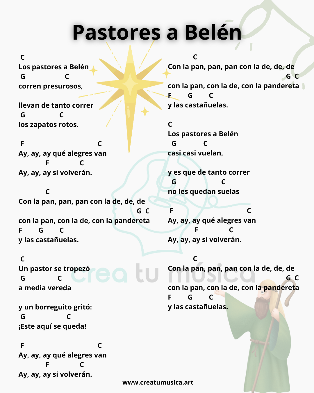 El villancico navideño Pastores a Belén habla de un grupo de pastores que, al enterarse del nacimiento del niño Jesús, corren presurosos y hacia Belén para conocerlo. En el camino, sufren algunas incidencias como la rotura de sus zapatos o el tropiezo de uno de ellos, pero continúan alegres con sus ofrendas.