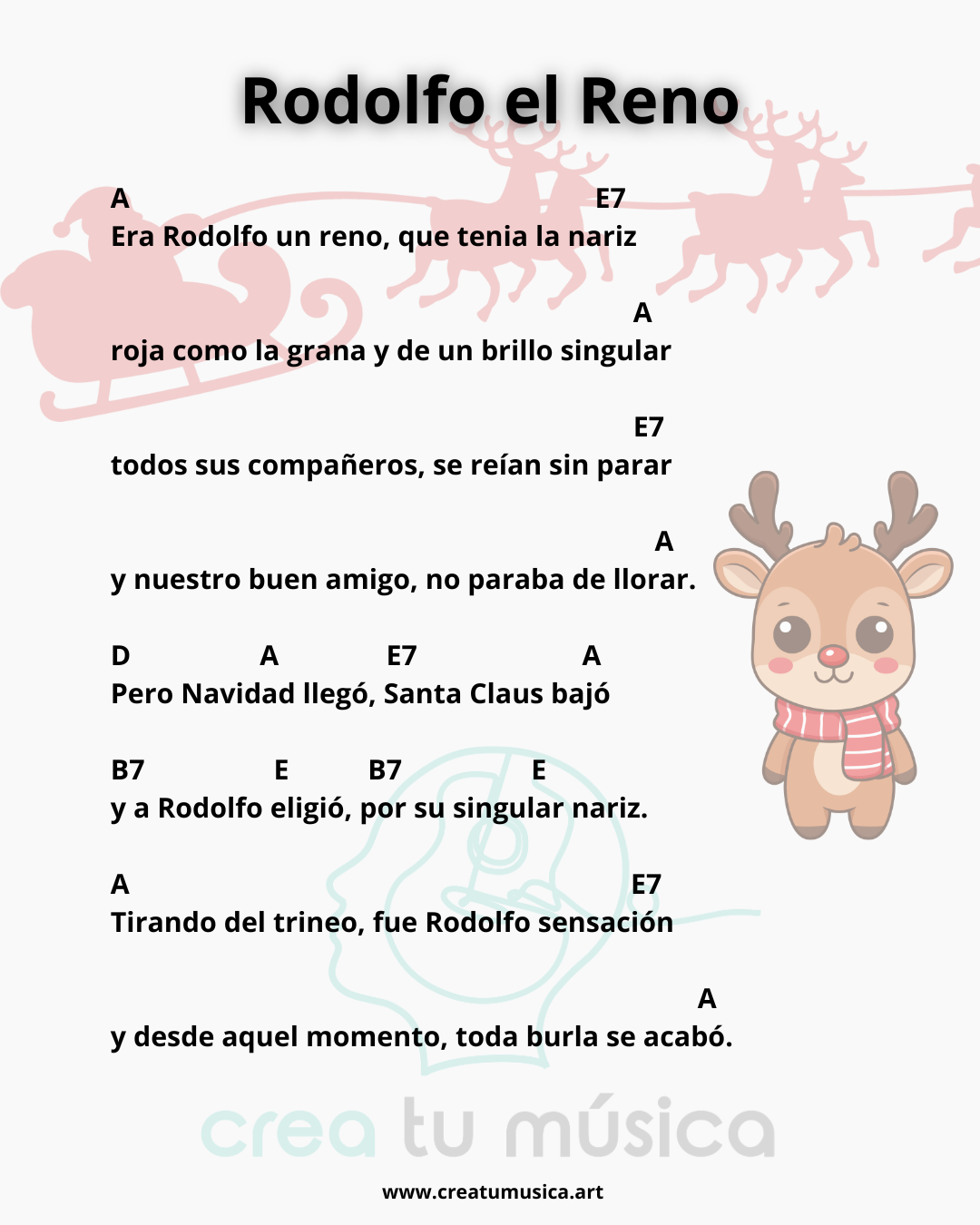 La canción de Rodolfo el Reno trata sobre un pequeño reno del que sus compañeros se burlaban por su nariz roja y brillante. Sin embargo, en una nochebuena con una fuerte tormenta y poca visibilidad, Rodolfo se convierte en un héroe al guiar el trineo de Santa Claus con su luminosa nariz, permitiendo que los regalos se entregaran a todos los niños a tiempo.